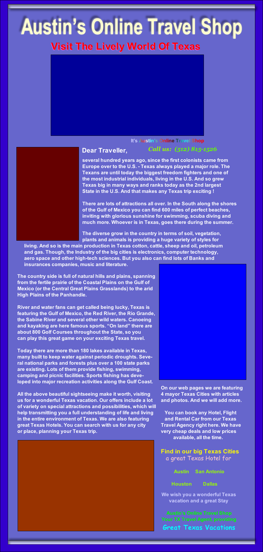 Want to BOOKMARK ? a great Texas Hotel for We wish you a wonderful Texas        vacation and a great Stay      Austin’s Online Travel Shop Your TX Travel Agent, providing  Great Texas Vacations